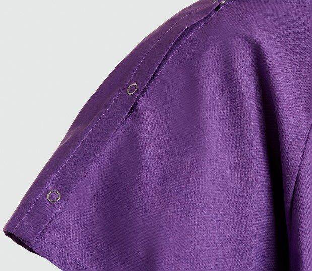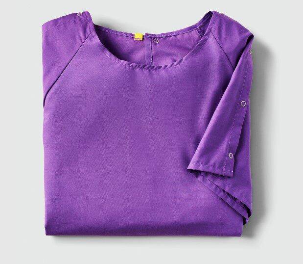 The vat-dyed plum color was intentionally chosen to set this collection apart while still providing a calming feel. Colors can have a powerful impact on moods and behaviors. This plum color is intended to differentiate patient apparel from staff scrubs without using alarming colors.
