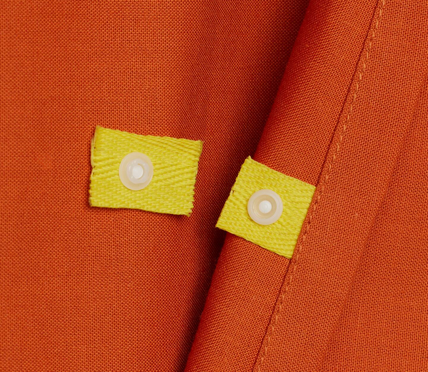 - Plastic Snap Closures at Neck, Waist, and Sleeves