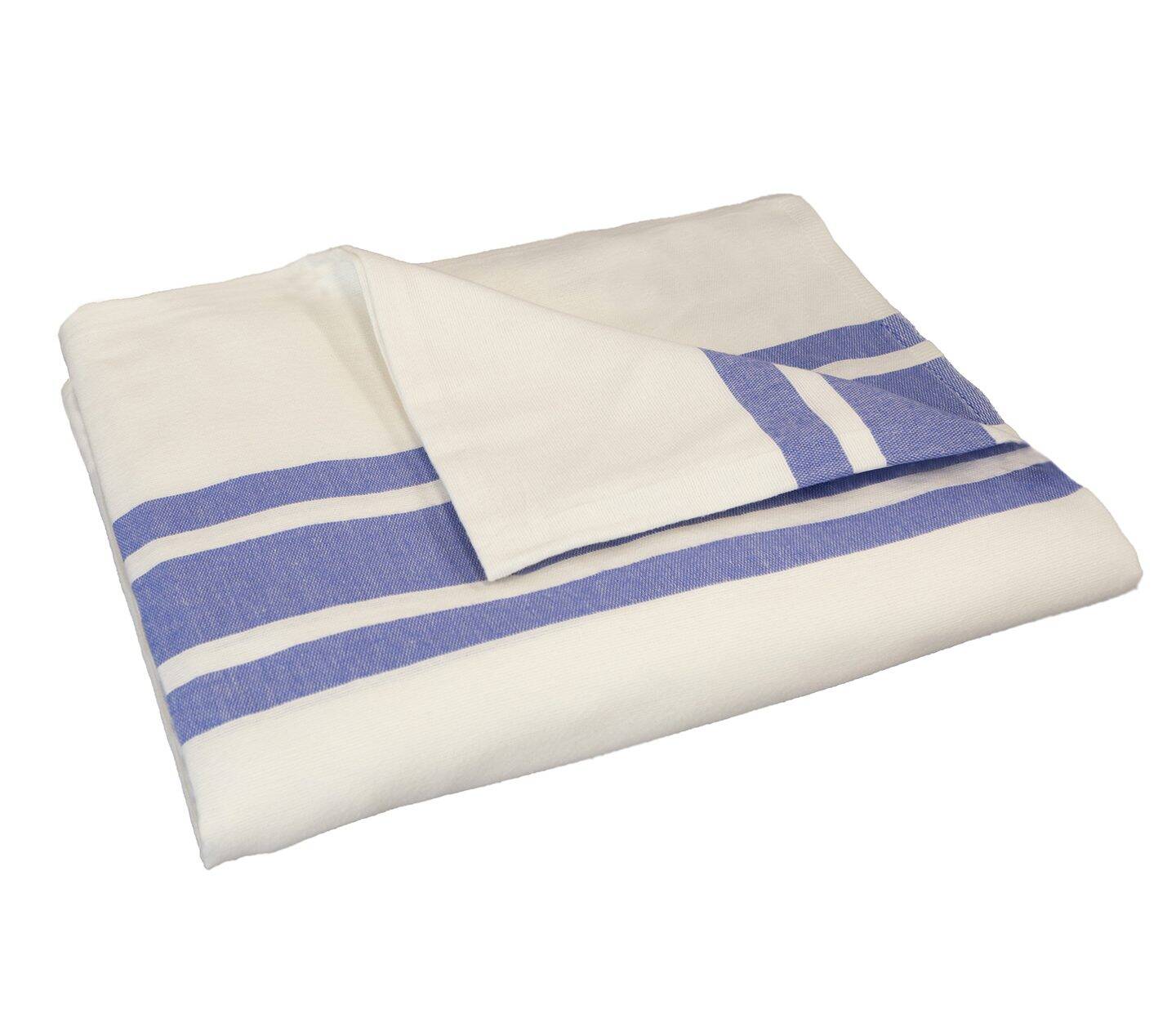 Bath Blanket Woven Blue Stripes Across Ends Selvage Sides Hemmed Ends | 48 | 72"x90" | White | 2.00 LB/EA |