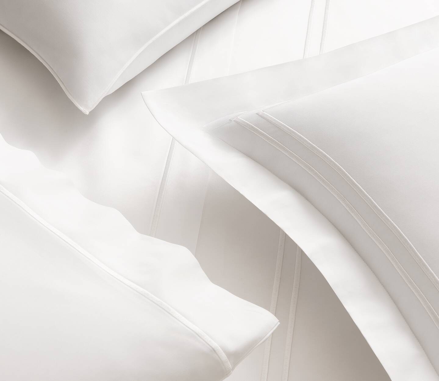 - Flat Sheets: Available in King or Queen with single line festooning at hem.