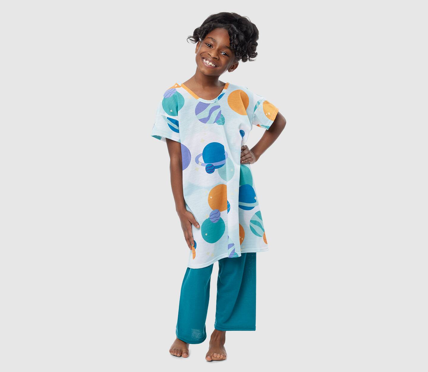 In addition to pajama pants, CosmicComfort™ is also available in a coordinated pediatric patient gown for an even more comfortable patient experience.