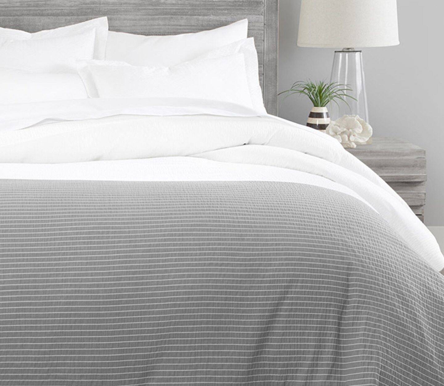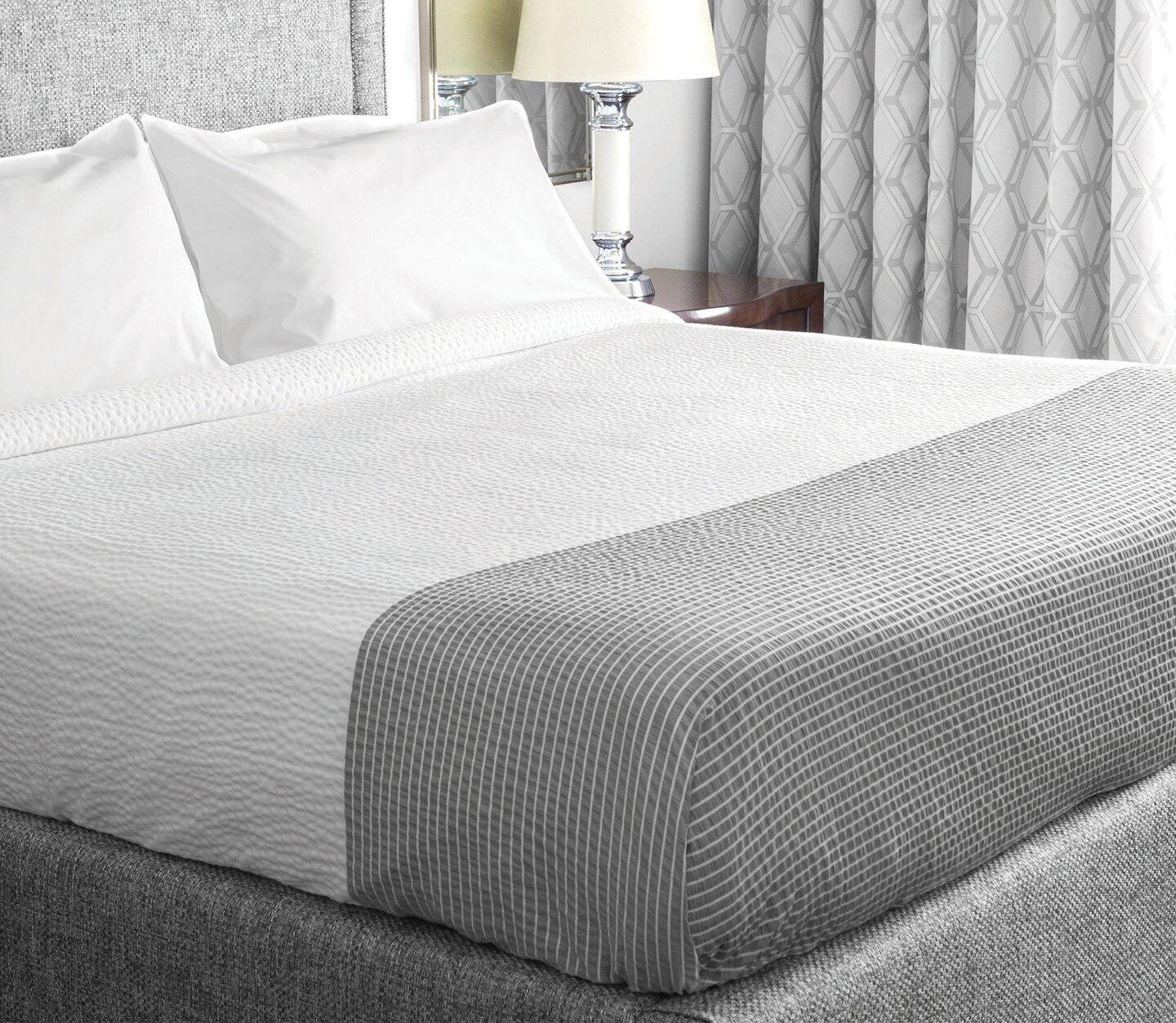 These innovative top covers are available in two styles. Solid white provides a clean, minimalist look, while StormCloud adds an elegant grey band at the foot of the bed. This band provides stylish contrast in addition to being a natural landing spot for luggage, feet, and other items that may have otherwise stained your white fabric!