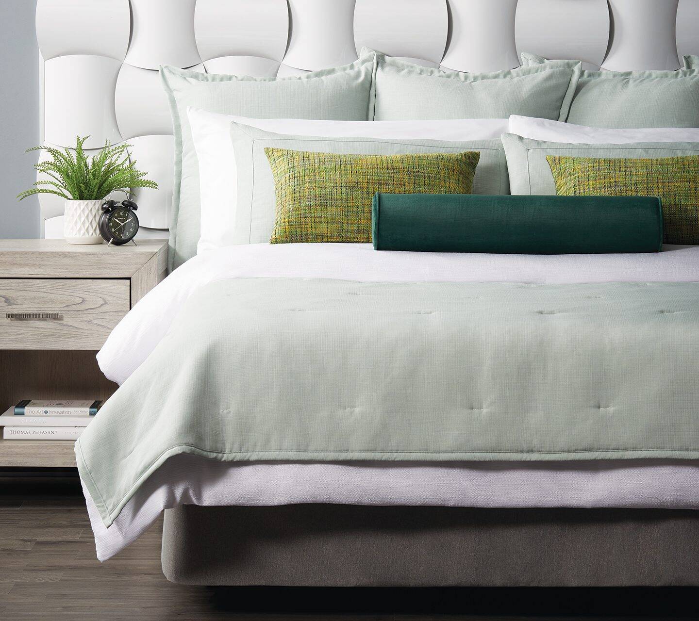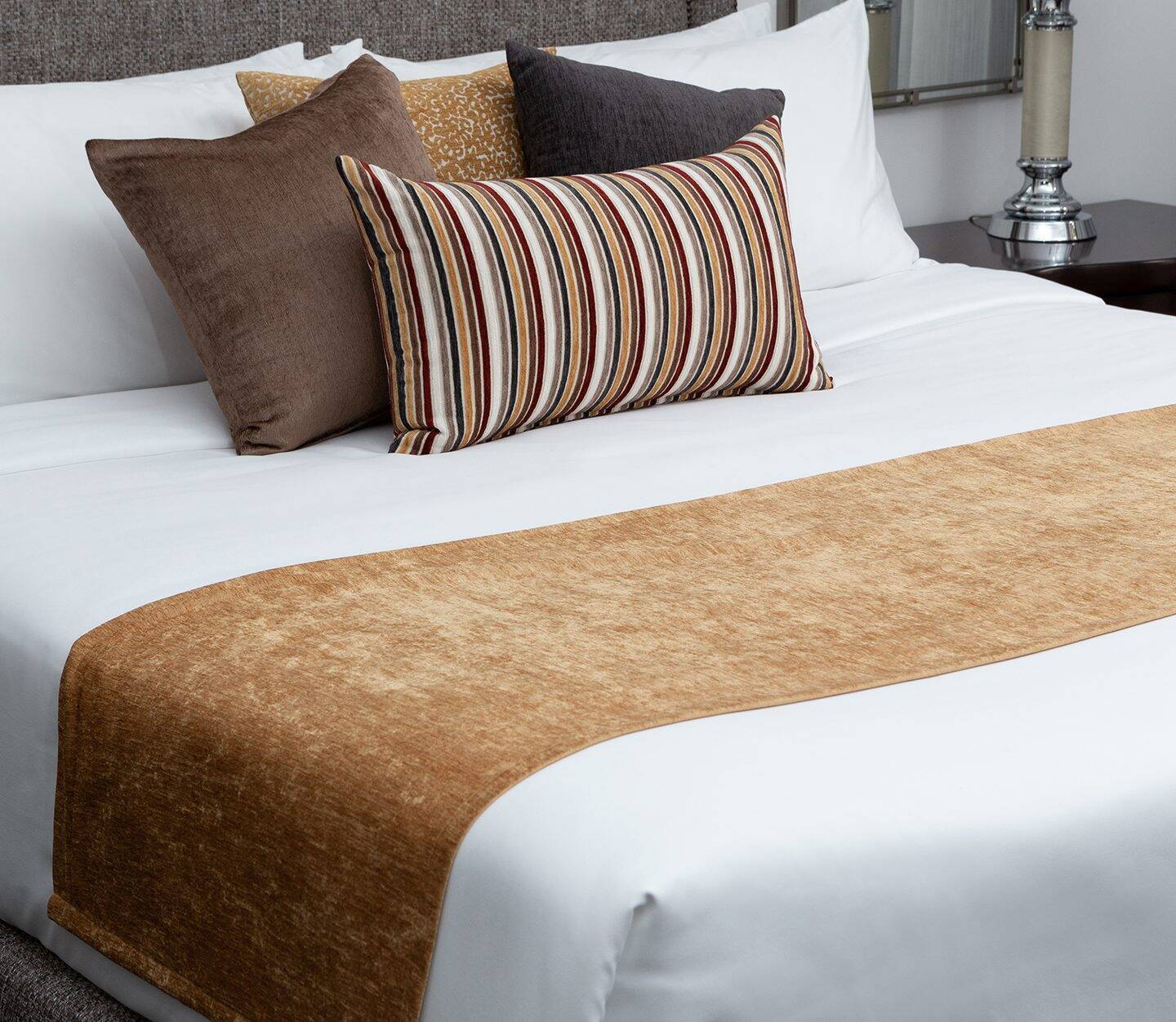 The bed is the centerpiece of a well-designed room experience. We can fabricate the finishing touches to make the guest experience as comfortable and visually stunning as possible. Our fabric gallery boasts over 60 healthcare and hospitality fabric collections of diverse patterns and colorways just for top-of-bed applications. These custom top-of-bed items include: