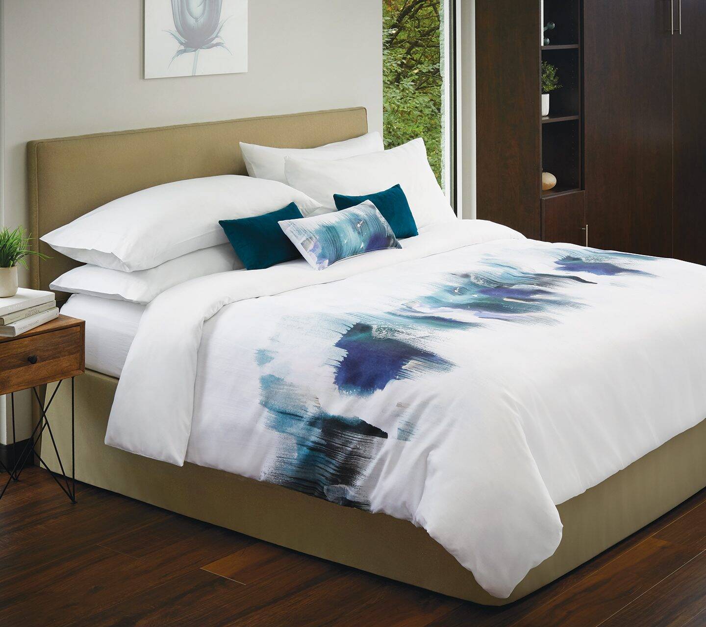 Coordinate design elements in your décor and create a custom design for any of our top-of-bed items with our ImagePoint® digital printed design options. Start by choosing from one of six base cloths as your foundation for your custom digital printed bedding piece. Using heat sublimation printing, the ink becomes part of the structure of the material, and the design on the fabric doesn’t fade or crack—even after multiple industrial laundries. Color brightness lasts, wash after wash. You can supply your own art or work with our design team. With no minimums, you can order the exact quantity you need, when you need it.
