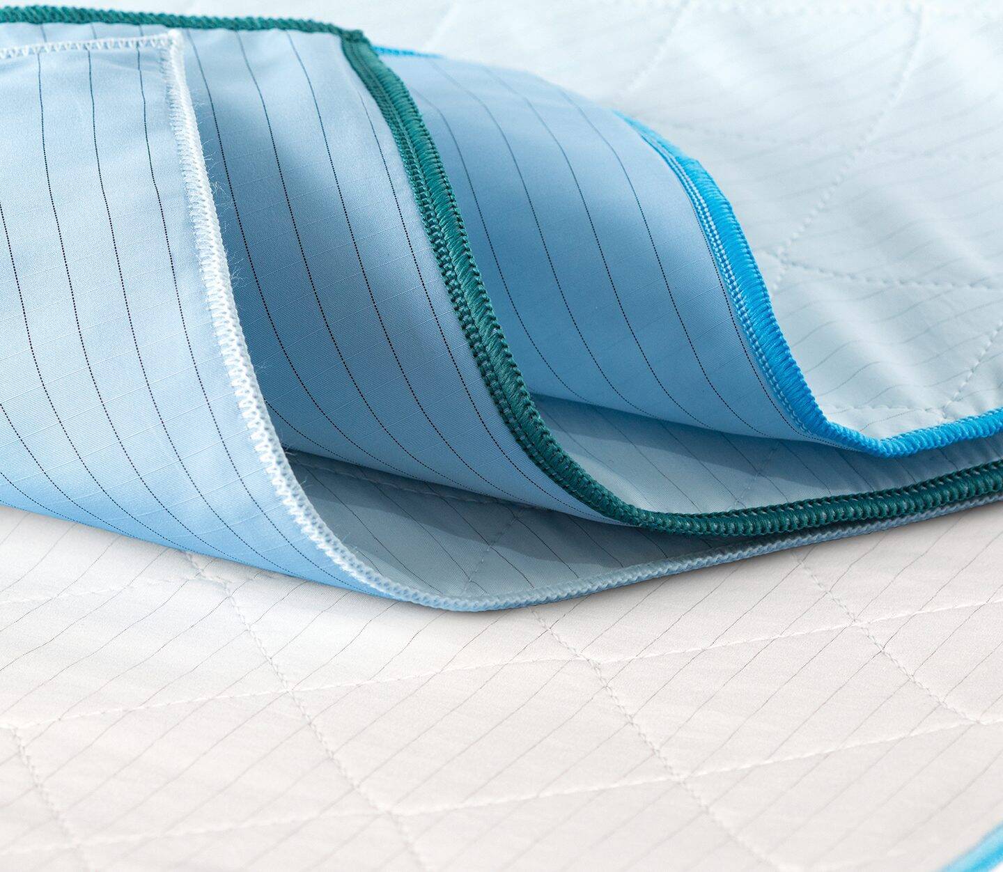 The DermaTherapy® underpad top surface is virtually lint-free and has a built-in antimicrobial, which both aid in minimizing the bioburden around the patient. Patented fabric engineering reduces friction by 35% versus polyester/cotton blends and continuous filament yarns are free of short, protruding fibers or pills that can create friction and cause irritation. The silk-like sleep surface is non-irritating and friendly to the patient’s skin.