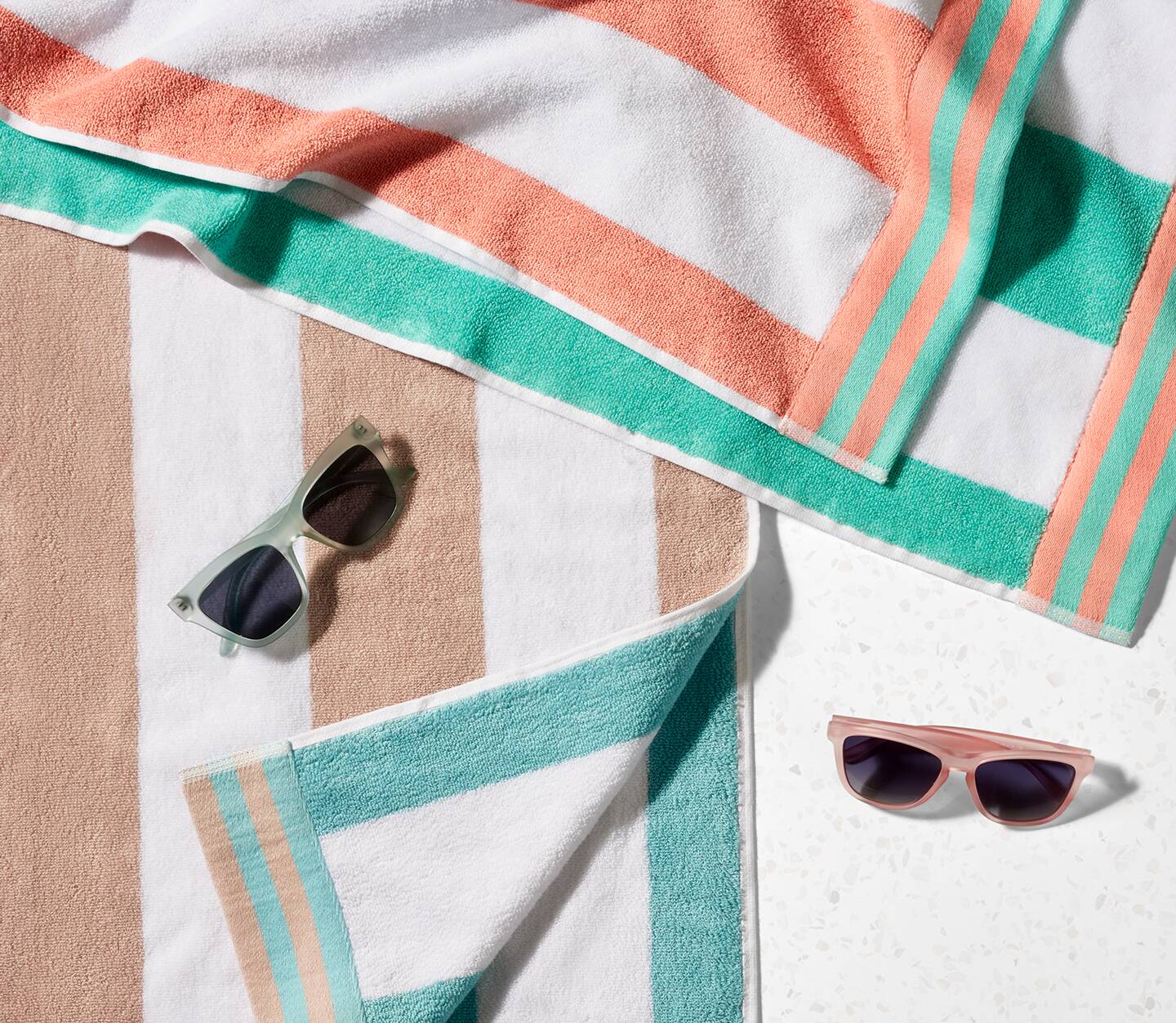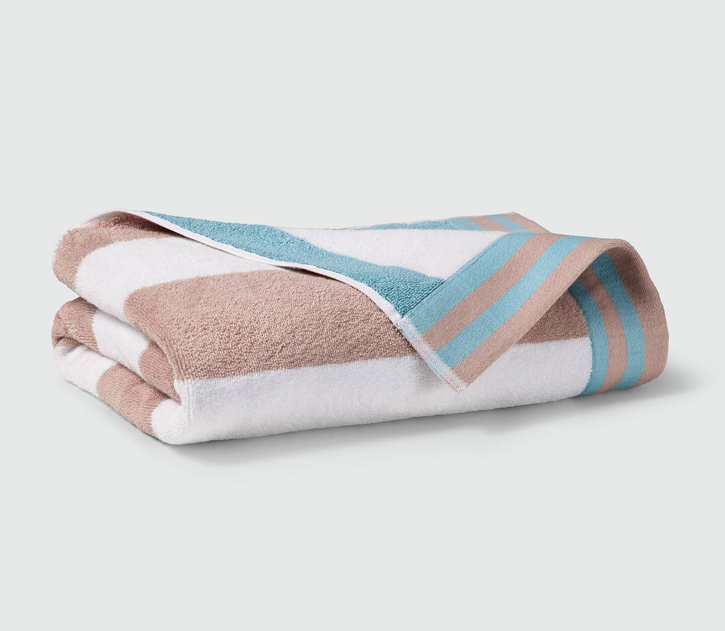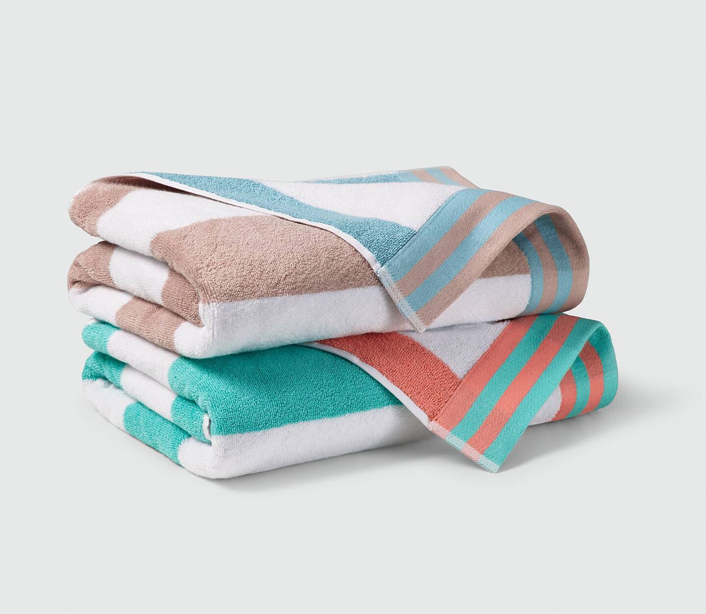 - Eye-Catching Reversible Patterns: Ditch the tired, boring blue striped towels. This collection offers two unique designs — Sea Breeze features a stylish blue/brown stripe pattern while Sorbet showcases vibrant teal/coral stripes. Both towels are reversible — a color inverted pattern appears on the opposite side of the towel, giving you even more variation.