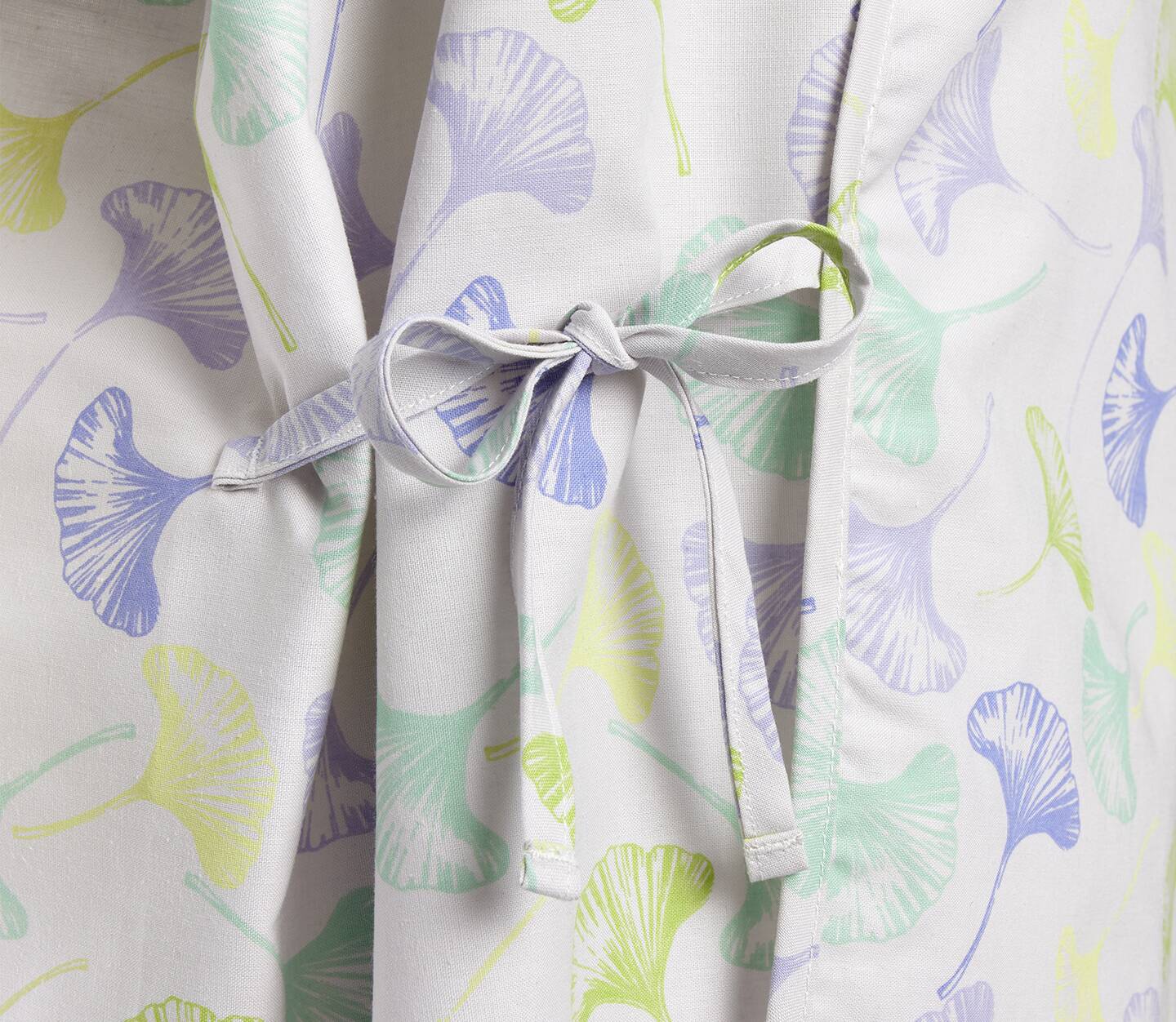 Additional features include self-bias trim and dual color-coded waist ties. One-Size Fits All in Gingko Lavender color.