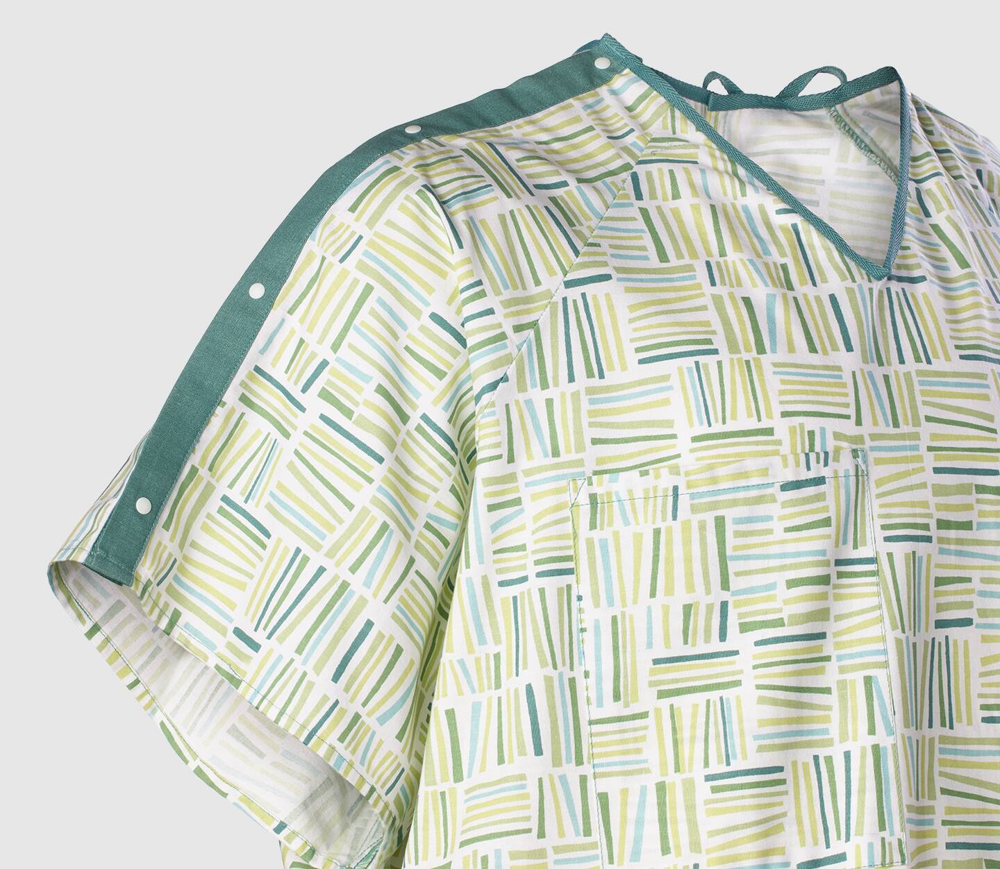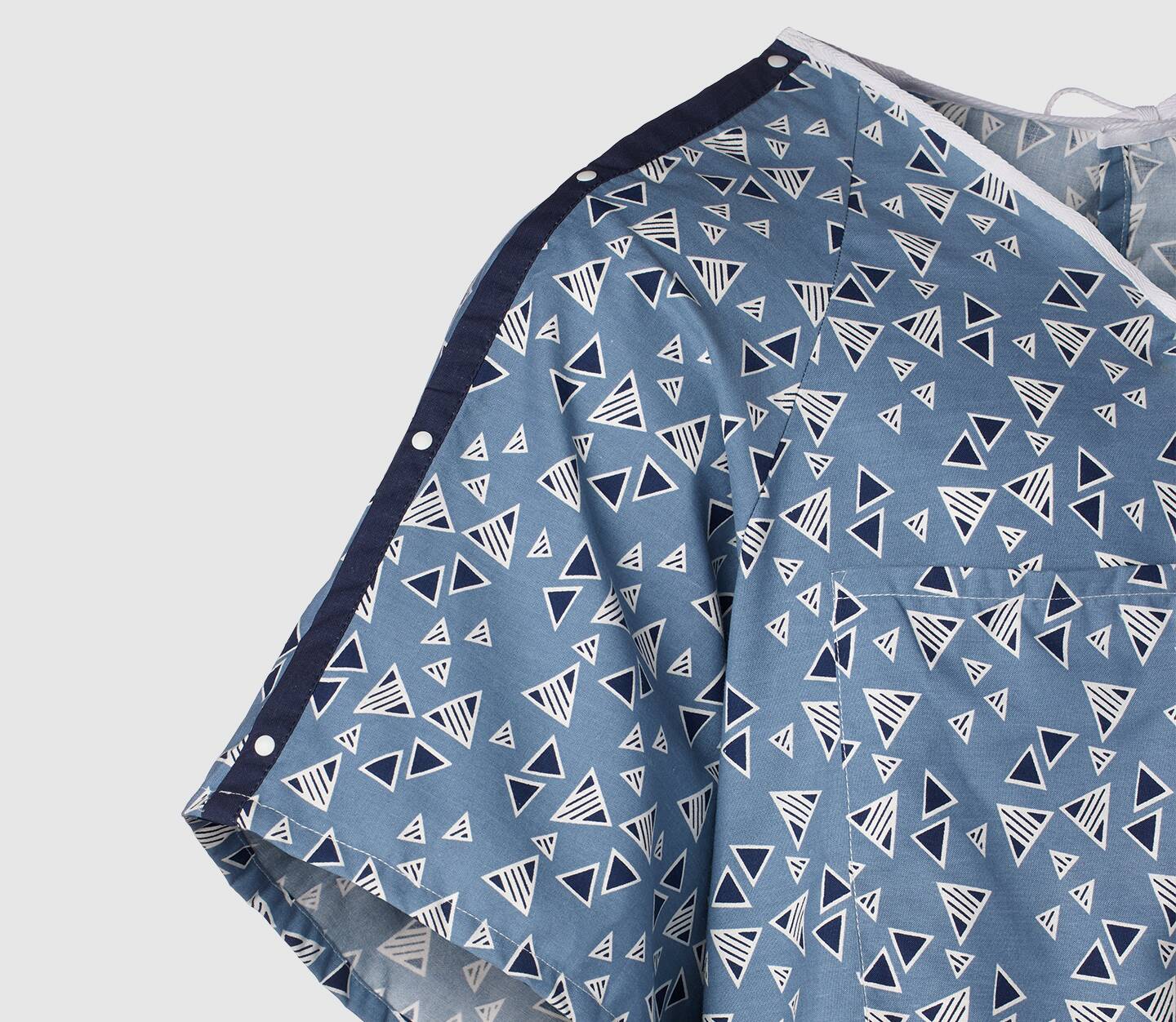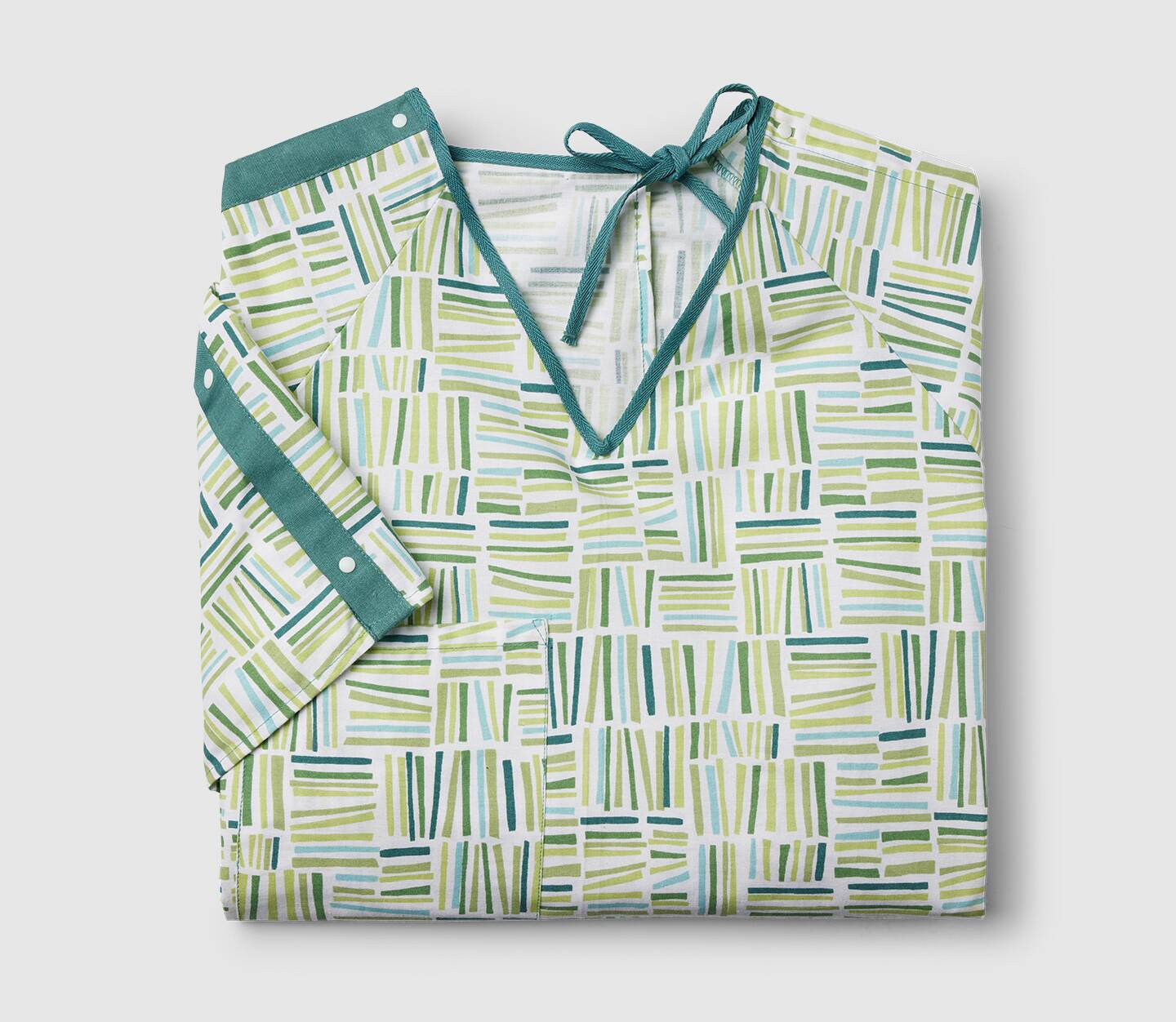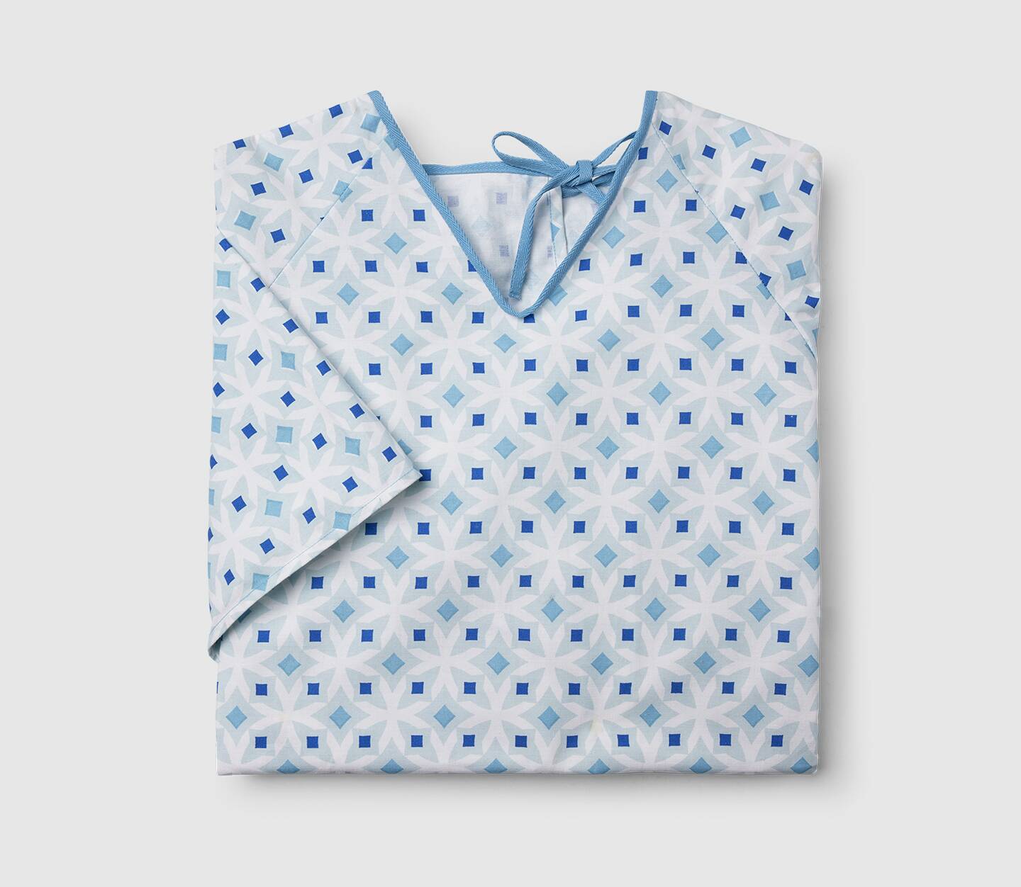 Today’s healthcare facilities are meticulously designed to promote calm and encourage healing. Our Elements patient gown collection reflects this growing emphasis on healing with the introduction of three comforting patterns – Prism (in colors Arctic Blue and Sage), Reeds, and Keystone.
