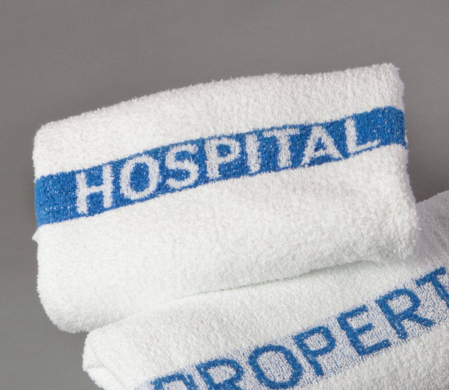 • “Hospital Property” blue letters help reduce towel loss