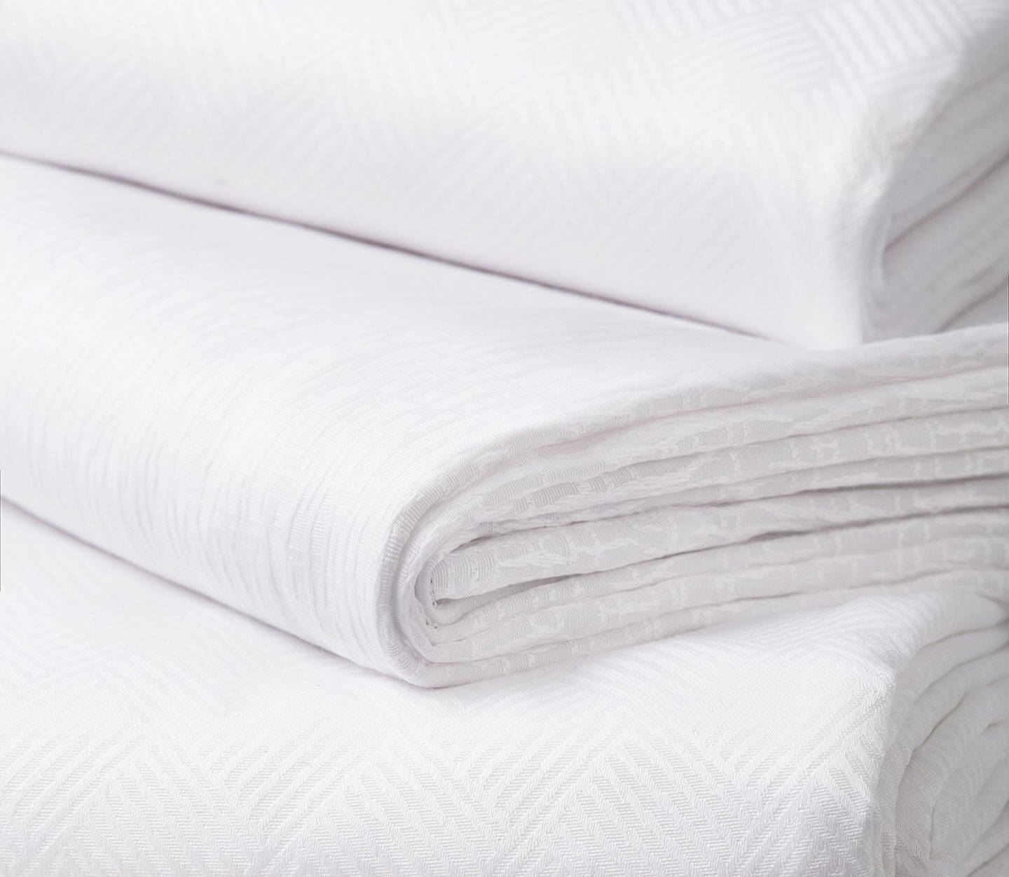 Impressions top covers were built to stand out in a crowd of plain, solid white fabrics. The Solitaire pattern is a geometrically elegant design that manages to look modern yet timeless. The unique texture creates a luxe finish that is the perfect finishing touch for an upscale room.