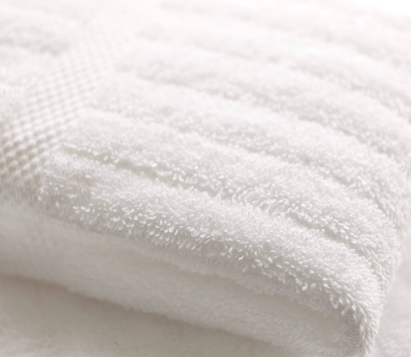 To use a Luxury Stripe® Towel is to know what it’s like to be pampered. Standard Textile has served the most prestigious hotels in Europe and the Americas for over 70 years. The Luxury Stripe® towel is the company’s artistic expression of five-star quality with a distinctive sculptured stripe design and dobby border—plus the lush, seductive hand of ultra-premium, long-staple, ring-spun combed cotton. This process removes up to 18% of low-quality, waste cotton and leaves only the finest fibers. It takes longer and costs more, but one touch and we think you’ll agree—the results speak for themselves. The supreme cotton quality of Luxury Stripe® results in a velvety soft hand that can’t be matched by other open-ended cotton towels.