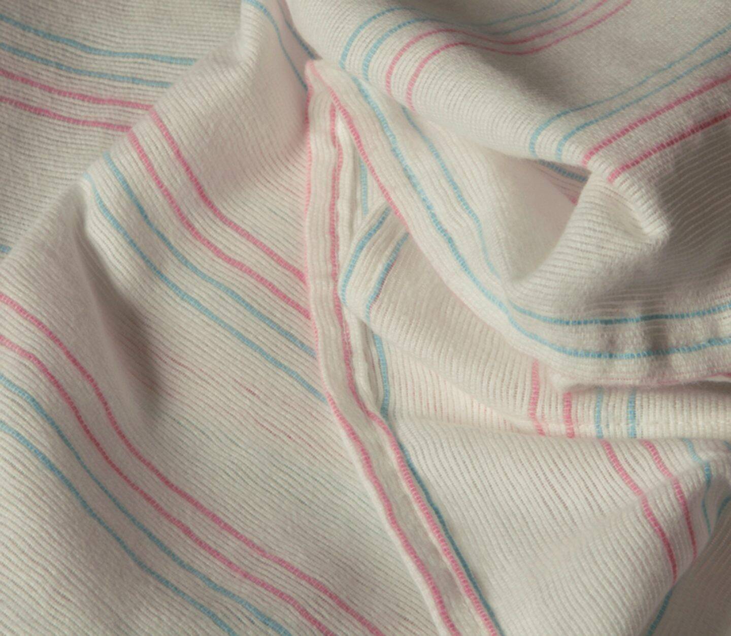 Baby Blanket PerVal Bleached Woven Pink & Blue Stripes Hemmed On Four Sides Lightly Napped | 72 | 34"x36" | White With Pink & Blue Stripes | 0.30 LB/EA |