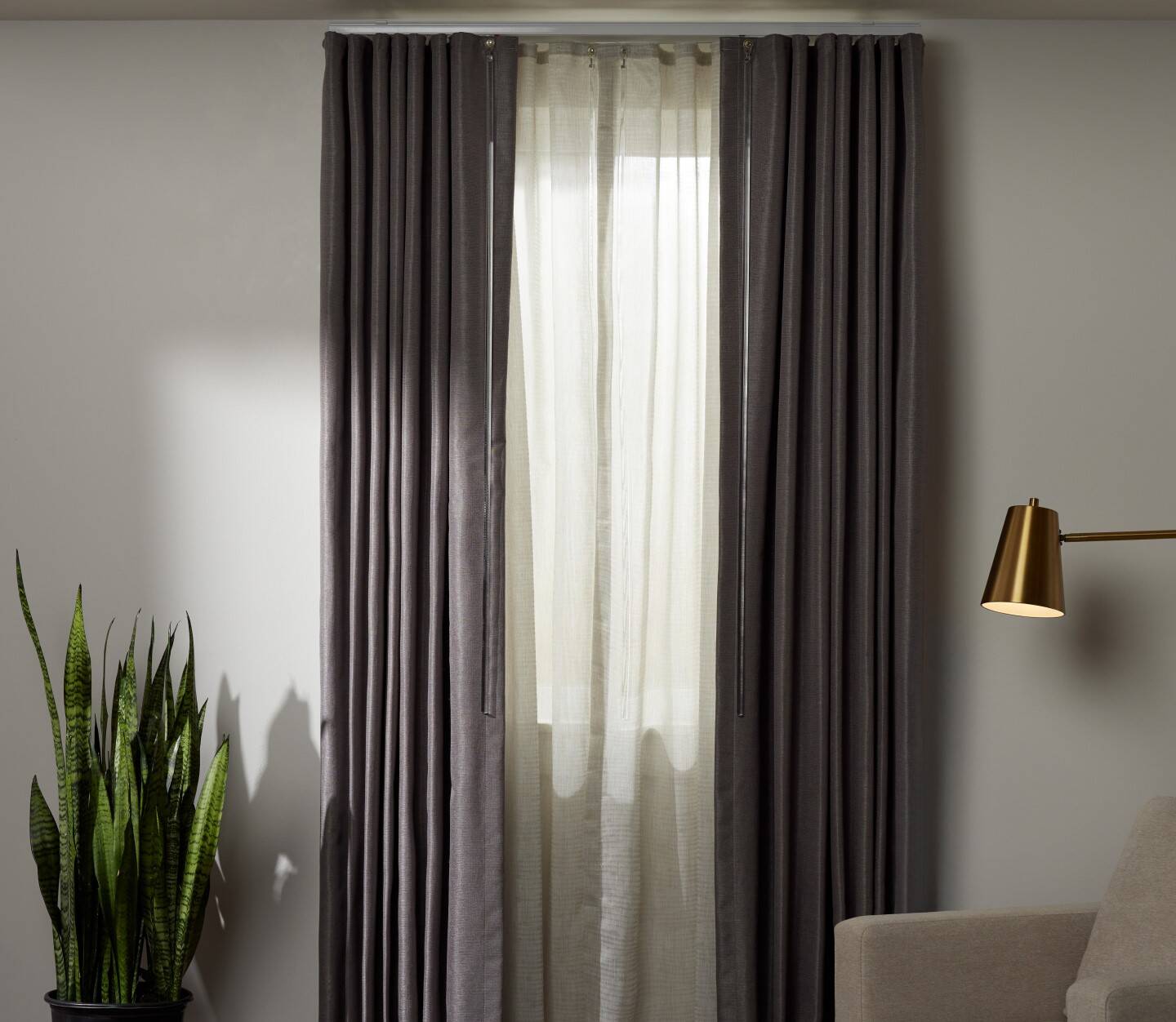 Our Ripplefold drapery is a single continuous panel produced with snaps sewed into the top hem. The ‘pleat’ in this drape actually comes from the way the snaps connect with the hardware.