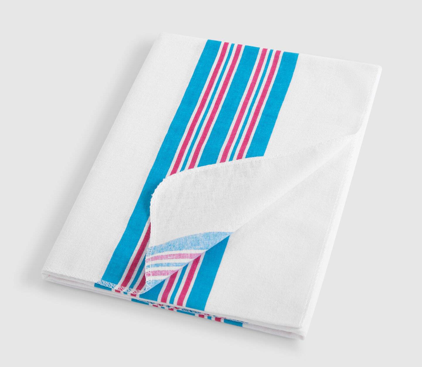 Baby Blanket Printed Pink & Blue Stripes, 100% Cotton | 300 | 30"x40" | White With Pink & Blue Stripes | 0.25 LB/EA |