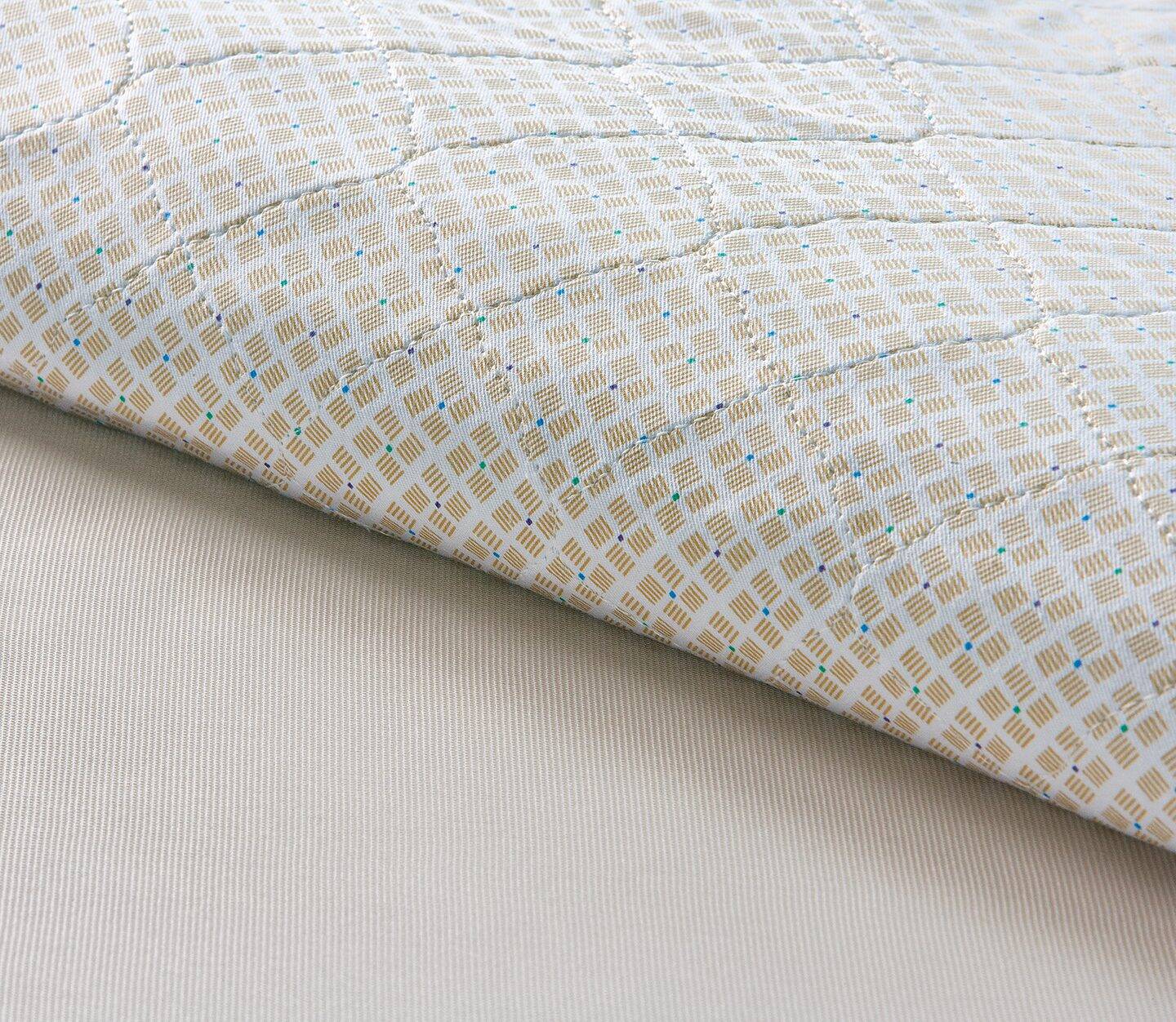 Twill Print is a conventional two-piece fabrication with square corners, incorporating a polyester/rayon soaker and a tan polyknit vinyl barrier in addition to the 55 % Cotton/45% Polyester blend face fabric. It offers a scalloped diamond quilt pattern and is merrowed on four sides.